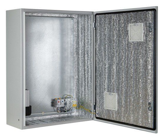 Климатический навесной шкаф с вентиляторными решетками (пассивная вентиляция) и защитным реле от "холодного пуска". Комплектация: утеплитель из порилекса НПЭ, замок 2 шт., ключ 1 шт., монтажная плата 1шт., люк под гермовводы 1 шт., гермовводы 5 шт., розетка 1 шт., автомат.выключатель 1 шт., термореле 1 шт., реле предстарта 1 шт., нагреватель Р=250 Вт 1 шт, вентиляционные панели 2 шт.; IP54, t-раб. -55...+50°С; внутр.размер (ШхВхГ) 577х777х270 мм, внеш.габариты (ШхВхГ) 600х800х300 мм; вес 32 кг, цвет ral 7035 (серый)