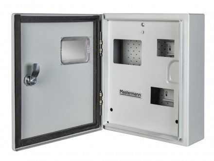Распределительный навесной шкаф для установки однофазного электронного счетчика и 7 однополюсных автоматических выключателя с металлической дверцей (дверца со стеклом); IP41, габ.размеры (ШхВхГ) 290х340х120 мм. В комплекте: шины «земля» и «ноль», гермовводы, заглушки, наклейка.