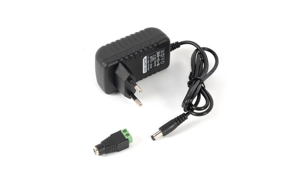12 В, 1 А. U-вх.110...245 В; сетевая вилка, штекер 5.5х2.1 мм, переходник на клеммы в комплекте; IP20, 25х75х75 мм. Пластиковый корпус.
