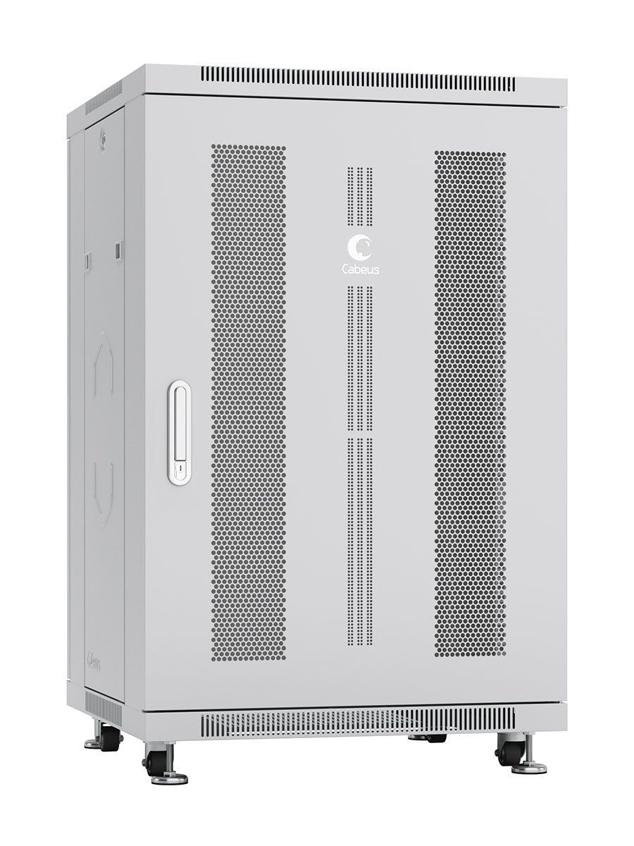 Шкаф телекоммуникационный 19", напольный 18U, 988х600x1000мм, дверь передняя/задняя перф., ручка с замком, полезная глубина 950 мм, распределенная нагрузка: 800 кг,цвет серый (RAL 7035).