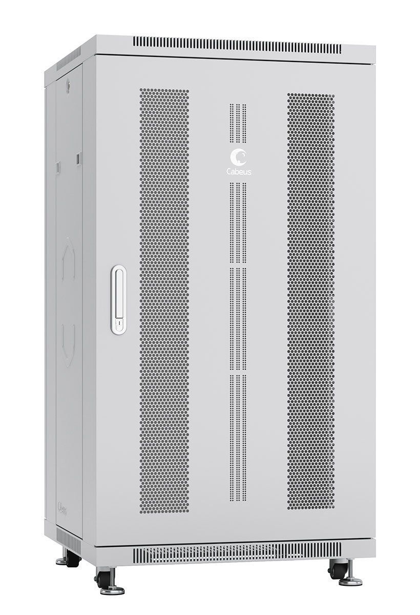 Шкаф монтажный телекоммуникационный 19" напольный для распределительного и серверного оборудования 22U 600x800x1166mm (ШхГхВ) передняя и задняя перфорированные двери, ручка с замком, цвет серый (RAL 7035)