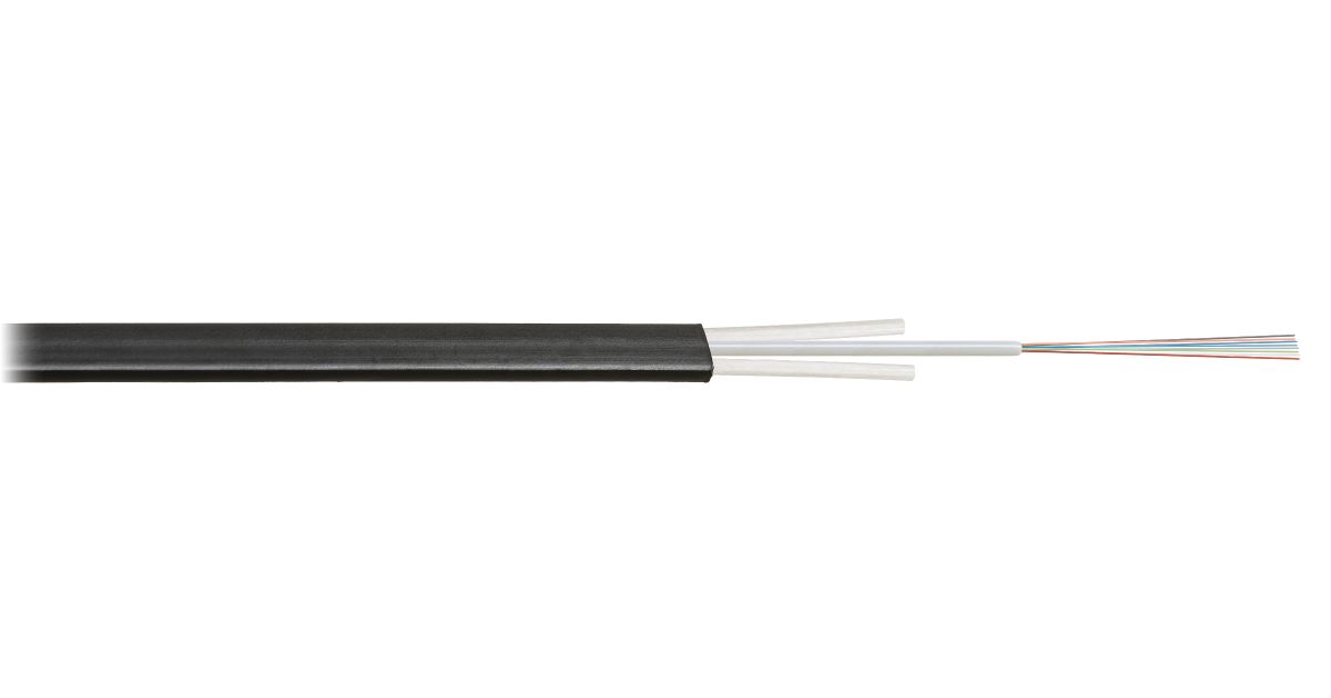 Кабель волоконно-оптический; 6 волокон; Одномодовый 9/125 мкм; G.652.D & G.657.A1; Внешний, плоский со стеклопластиковыми прутками, 1.3кН, PE, черный.