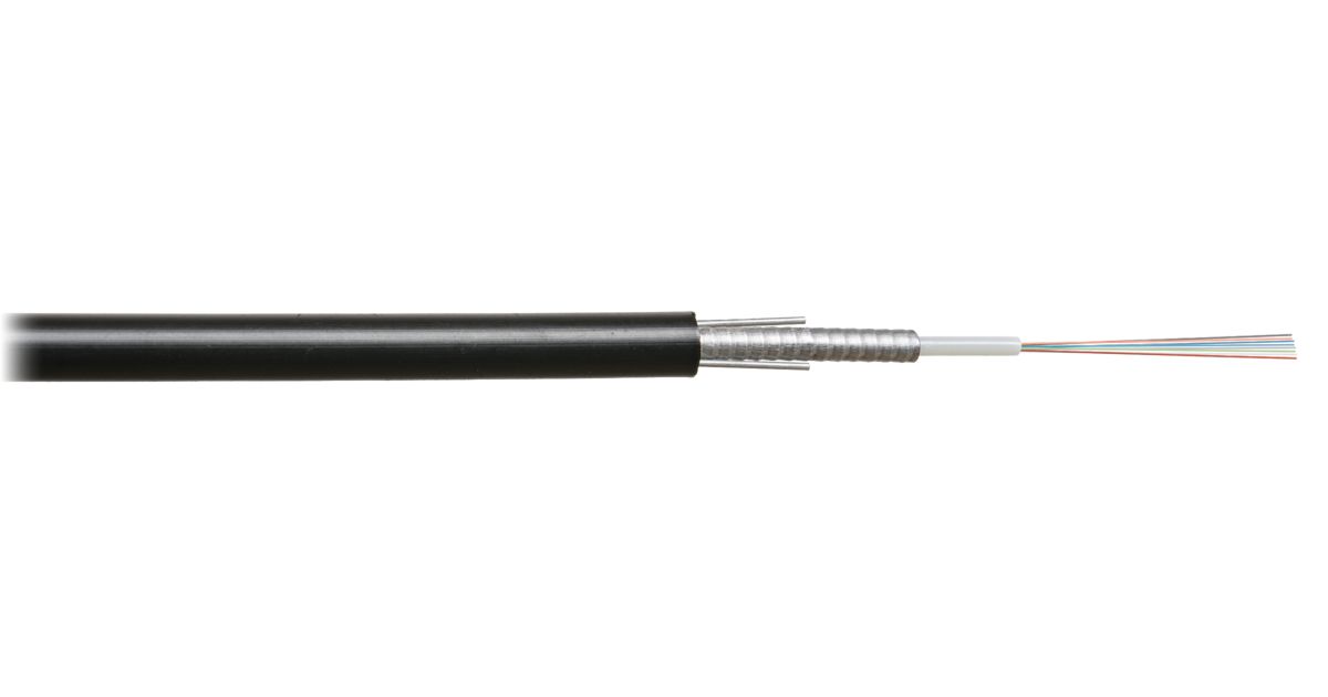Кабель волоконно-оптический, 12 волокон, одномодовый 9/125мкм, стандарта G.652.D/G.657.A1, внешний, броня из стальной гофрированной ленты, 1.5кН, PE, черный.