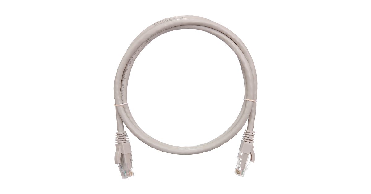 Коммутационный шнур U/UTP 4 пары, Кат.6 (Класс E), заливной, с защитой защелки, многожильный, BC (чистая медь), 24AWG (7х0,205мм), PVC нг(А), серый, 20м.