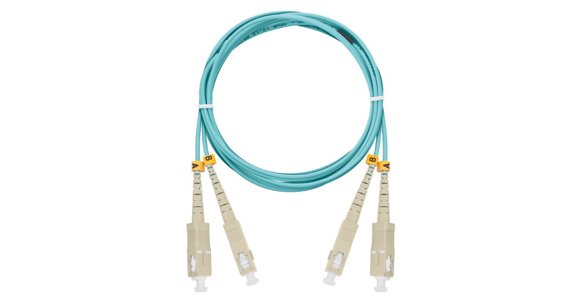 Шнур волоконно-оптический, многомодовый 50/125мкм, стандарта ОМ3, SC/UPC-SC/UPC, двойной, LSZH нг(В)-HFLTx, 2мм, аква, 3м.