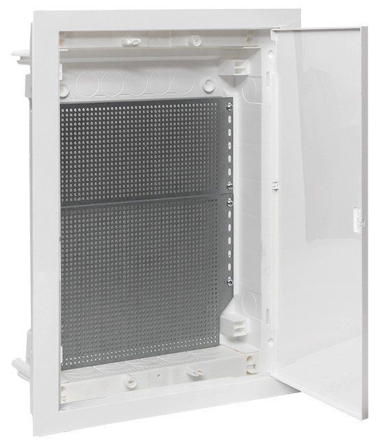 Щиток слаботочный серии Nova с 3-мя монтажными панелями (172х250 мм + 2х(110х250 мм)) для установки антенных разветвителей, Wi-Fi роутеров, патч-панелей и т.д., встраиваемый, корпус АБС-пластик, U-номин. 400 В, I-номин. 63 А, УХЛ3, IP41, габ.размеры 554х315х90 мм, цвет белый RAL 9011