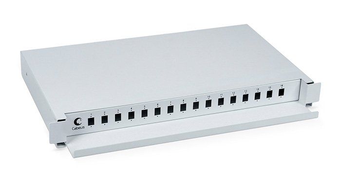 Кросс бокс оптический 19" на 16 SC (LC duplex) со сплайс пластиной, выдвижной (без пигтейлов и проходных адаптеров)