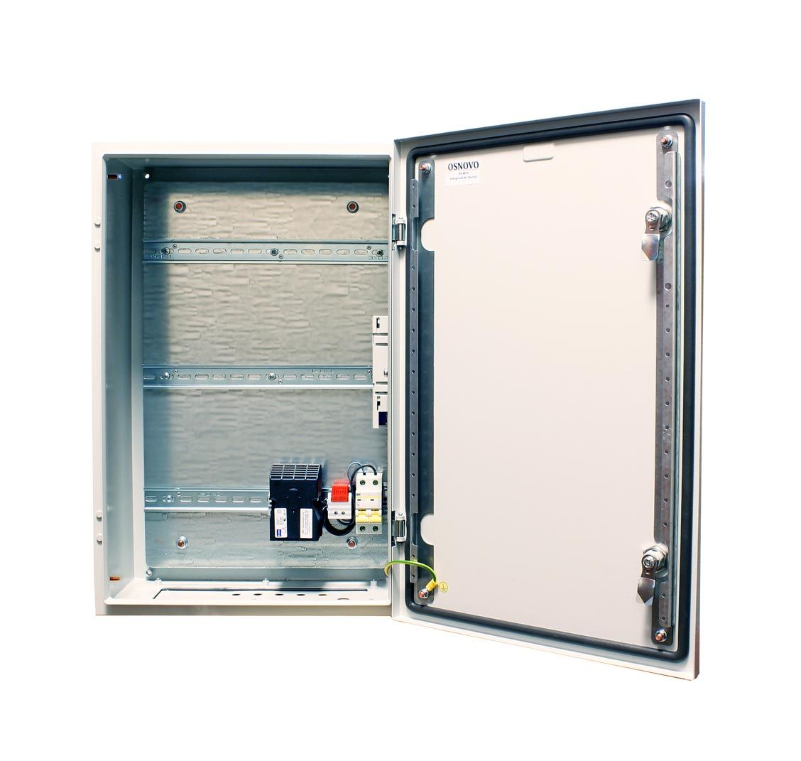 Уличная станция с оптическим кроссом + система обогрева : 2 разъема SC (ложемент 8 КДЗС, пигтейл оптический одномодовый SC 0,9мм длинна 1,5м 183x113x22мм); шкаф металлический; IP66, встроенные DIN-рейки: верхняя - 340мм, средняя - 320мм, нижняя -200мм; набор гермовводов; автоматический выключатель 2P 220 В, 10A; обогреватель на DIN-рейке AC 230 В, 100Вт; вентилятор 120x120x25 мм, AC 220В, 19Вт; -50…+50°С; 400x600x210 мм. Поддержание температуры внутри шкафа от-15 до +55°С (при изменении наружной температуры от -50... +50°С).