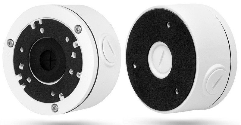 Монтажная коробка для наружной установки камер видеонаблюдения PRAXIS моделей: PP-7111MHD (II), PB-7112MHD, PP-8111MHD, PE-8112MHD, PE-7141IP A/SD, PE-8141IP, PB-8142IP; цвет белый; IP67, в комплекте гермовводы 3/4", 1/2"; 108х52мм.