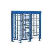 Сдвоенный полноростовый турникет с с механическим приводом доворота створок. Для эксплуатации внутри помещений и на открытом воздухе. Исполнение: корпус – оцинкованная сталь, синий цвет; ротор, планки – нержавеющая сталь. 24 В, 1,2 А, IP54, -40...+55 °С, 2480х1595х2303 мм, 375 кг