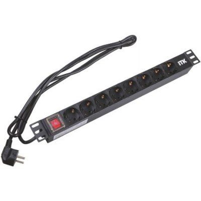 Блок силовых розеток 19" со шнуром 2 м., с LED выключателем, 7 розеток SCHUKO, AC 220 В/50 Гц, P max 3,5 кВт, I 16 А, 44х482,6х44 мм, цвет черный. Материал корпуса - термостойкий ПВХ