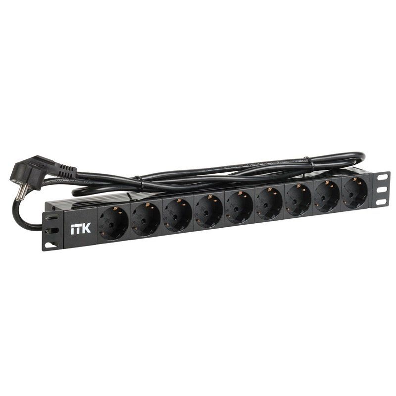 Блок силовых розеток 19" со шнуром 2 м., 9 розеток SCHUKO, шнур SCHUKO , AC 220 В/50 Гц, P max 2,2 кВт, I 10 А, 44х482,6х44 мм, алюминиевый профиль, цвет черный.