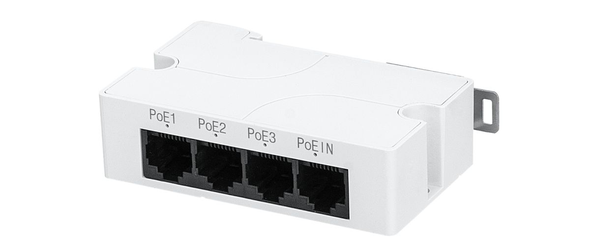 Удлинитель Fast Ethernet с передачей РоЕ для 3-х камер; расстояние 100м; вход 1хRJ-45 с РоЕ 802.3 af/at 25 Вт, выход 3хRJ-45 для подключения 3-х камер до 8Вт каждая; -10...+55, 82×52×23 мм.