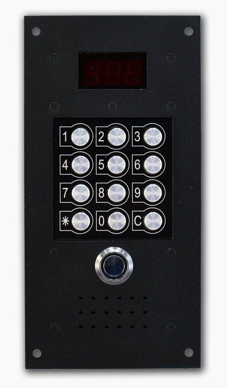 Имеет цифровую адресацию абонентских устройств, до 255 абонентов; индикация трёхразрядная, семисегментная; конструктивно лицевая панель стальная, общей толщиной 5.0 мм; клавиатура кнопочная двухпружинная, с упорной стальной пластиной; подсветка наборного поля клавиатуры; встроенные электрические цепи управления и размагничивания электромагнитного замка.