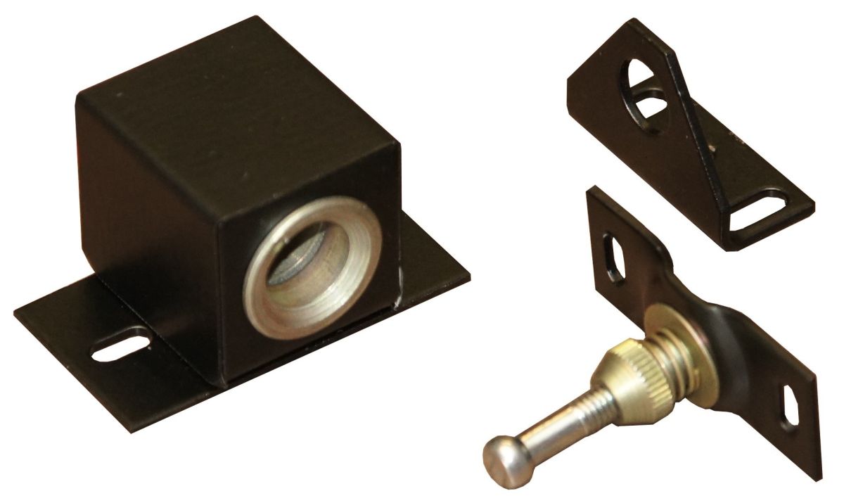 Promix-SM102 накладной универсальный миниатюрный электромеханический замок (Шериф-2 лайт НО 12 В). Четыре варианта крепления замка, два ригеля в комплекте. Сила удержания ригеля 300 кг, 26,5х27х31,5 мм. Нормально открытый, напряжение питания 12 В/0,1 А, цвет - черный.