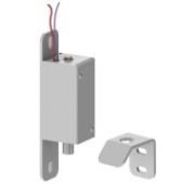 Электромеханический замок с толкателем, выталкивает («отстреливает») ригель при открытии, усилие удержания 300 кг, нормально закрытый, напряжение питания 24 В/0,22 А, датчик положения двери