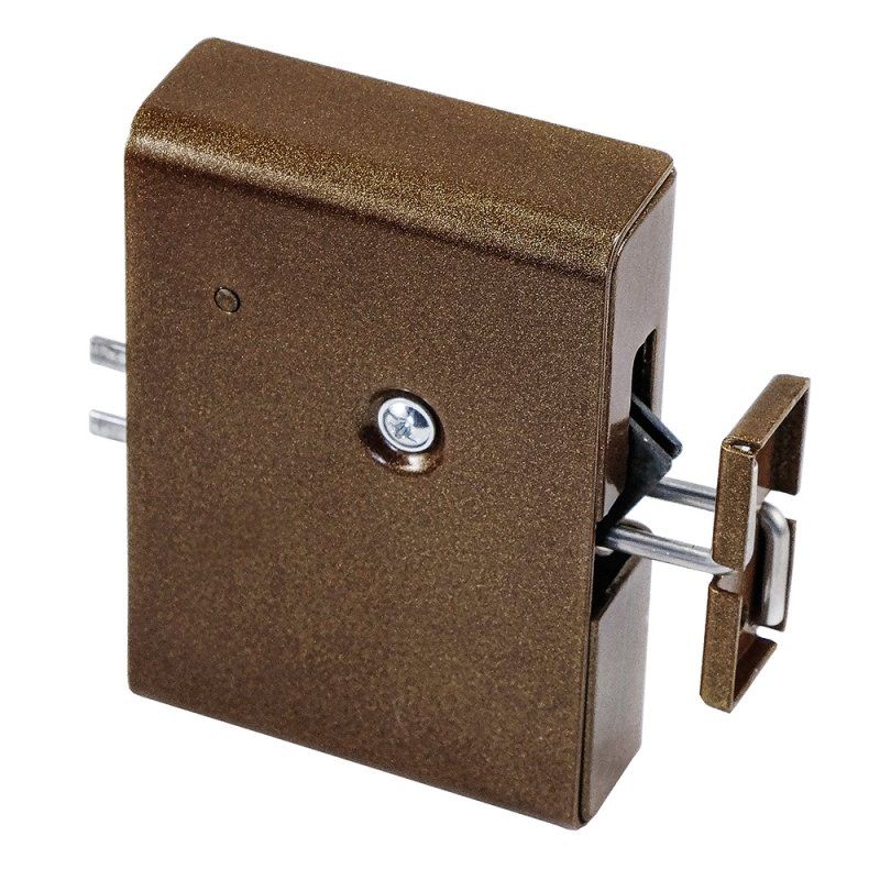 Электромеханический замок с толкателем и датчиком положения двери. Усилие удержания ригеля 250 кг. Нормально закрытый, напряжение питания DC 12 В/0,4 А, -30...+50 °С, цвет - коричневый