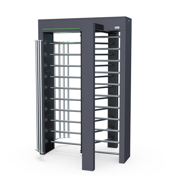 Турникет полноростовой моторизованный; ширина прохода 570мм; корпус из окрашенной стали (цвет: чёрный), ротор и планки из нержавеющей стали; светодиодная индикация; подсветка прохода; пульт в комплекте. При выключенном питании открыт в обоих направлениях. Питание: DC 12В; не более 10А. -40°С...+50°С. IP-54. Габаритные размеры (ВхШхД) 2220х1445х1370 мм. Вес 226кг.