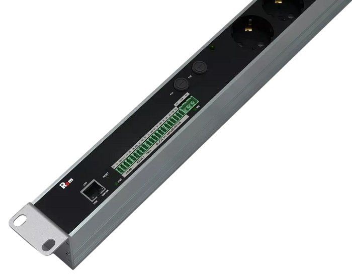 Блок розеток для 19" шкафов; горизонтальный; 1 фаза, 32 A; 2х2xSchuko; контроллер PDU; клеммная колодка; алюминиевый корпус; 45х484х60 мм.