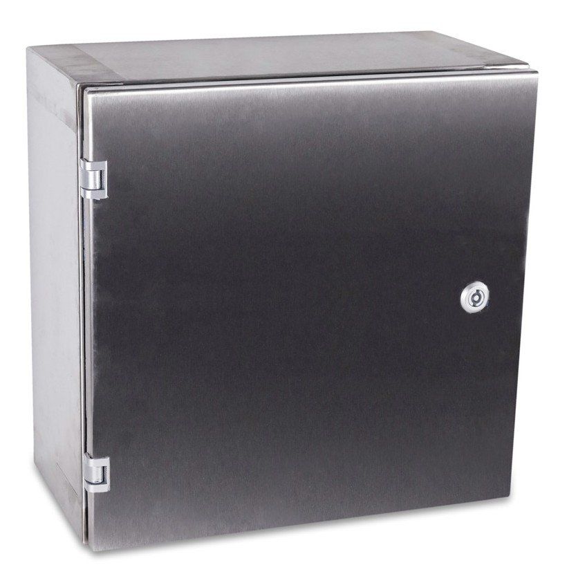 Шкаф распределительный из нержавеющей стали марки AISI 304 шлиф., монтажная панель, замок на двери, IK10, IP66, габ.размеры (ВхШхГ) 600х600х250 мм.