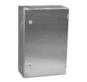 Шкаф распределительный из нержавеющей стали марки AISI 304 шлиф., монтажная панель, замок на двери, IK10, IP66, габ.размеры (ВхШхГ) 800х800х300 мм.