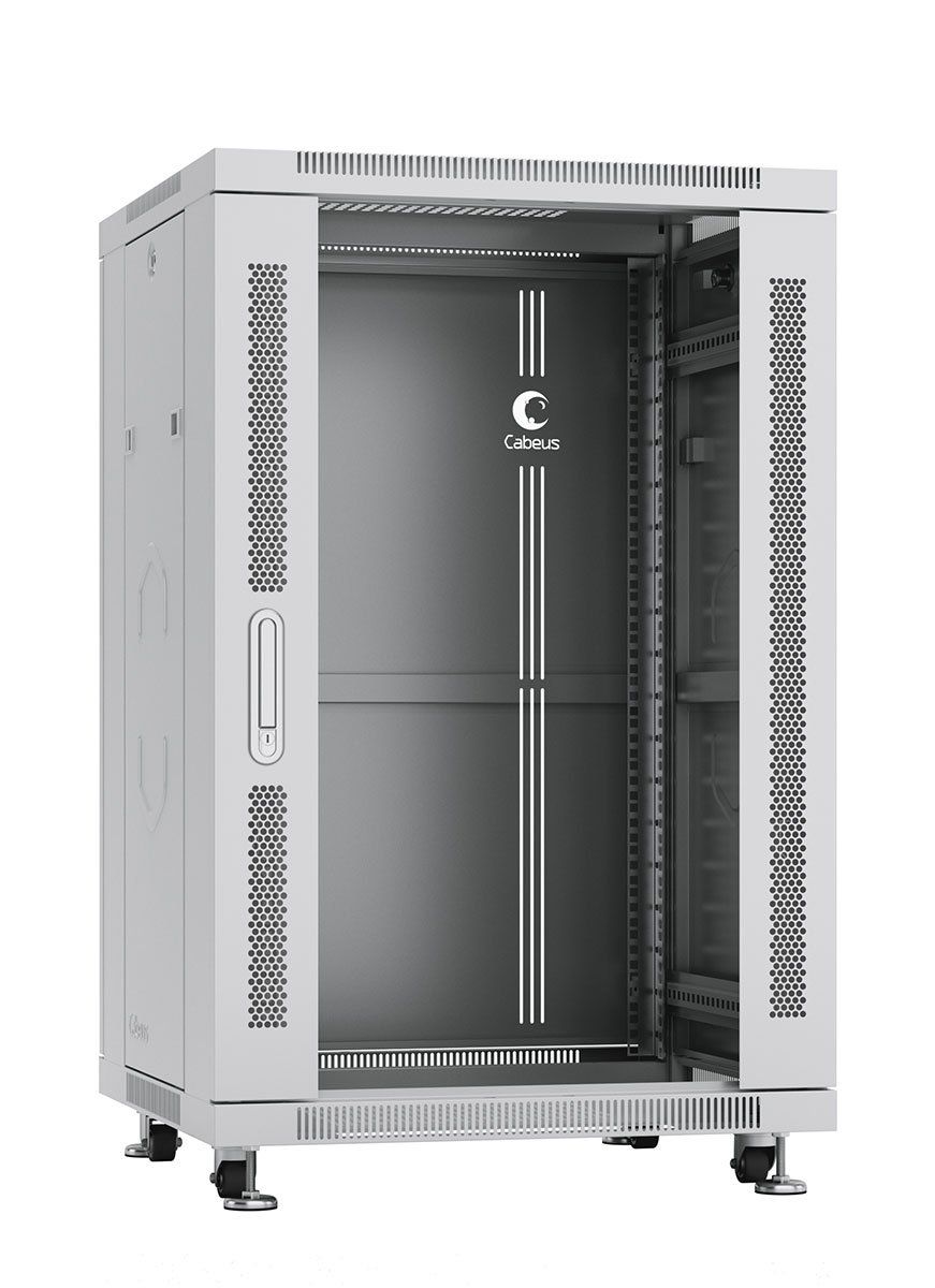 Шкаф телекоммуникационный 19" напольный, 22U, дверь стекло, 1166х600х800 мм (ВхШхГ), полезная глубина 750 мм, распределенная нагрузка: 800 кг, цвет серый.