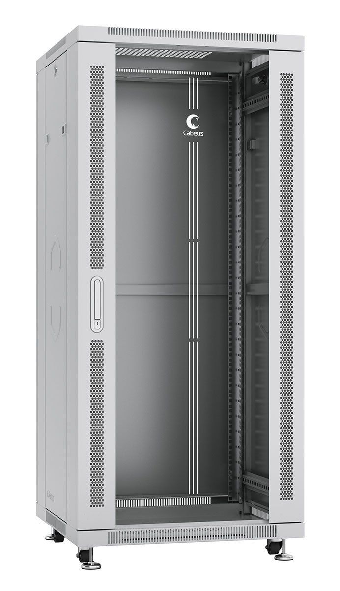 Шкаф монтажный телекоммуникационный 19" напольный для распределительного и серверного оборудования 27U 600x800x1388mm (ШхГхВ) передняя стеклянная и задняя сплошная металлическая двери, ручка с замком, цвет серый (RAL 7035)