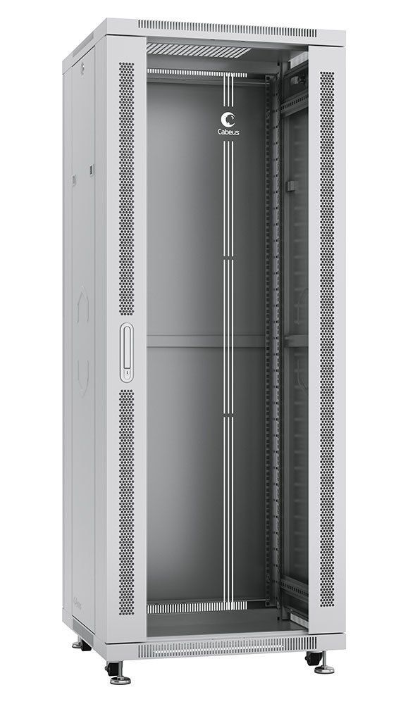 Шкаф телекоммуникационный 19" напольный, дверь стекло, 32U, 1610х600х600 мм (ВхШхГ), полезная глубина 550 мм, ручка с замком, распределенная нагрузка: 800 кг, цвет серый.
