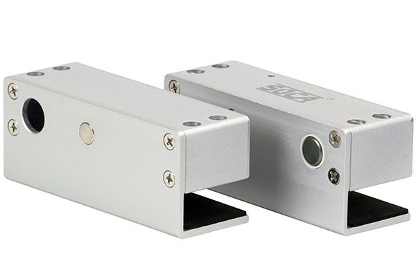 Накладной соленоидный электромеханический замок для стеклянных дверей (толщина стекла 9-12 мм), нормально-открытый, датчик положения двери НЗ и НО, регулируемое время задержки 0 и 3 сек., 12/24 В, 210/110 мА (в режиме ожидания) и 570 мA (в режиме срабатывания), замок 113,5х39,2х46,7 мм, ответная часть 113,5х39,2х46,7 мм