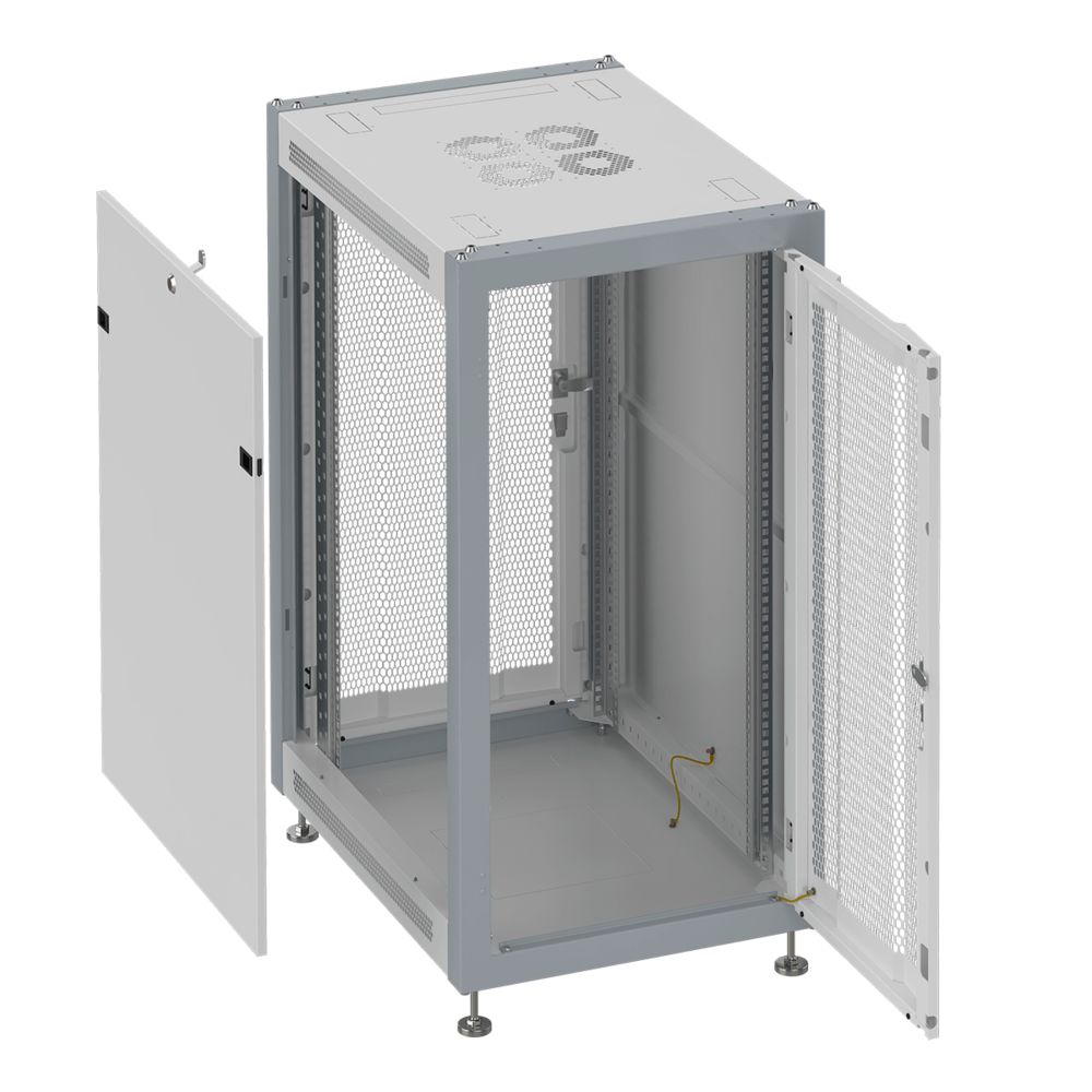 Шкаф монтажный телекоммуникационный 19" напольный 33U 600x1000x1600mm (ШхГхВ), передняя дверь перфорированная, задняя дверь перфорированная, поворотная ручка с замком, цвет серый RAL 7035. Разобранный.