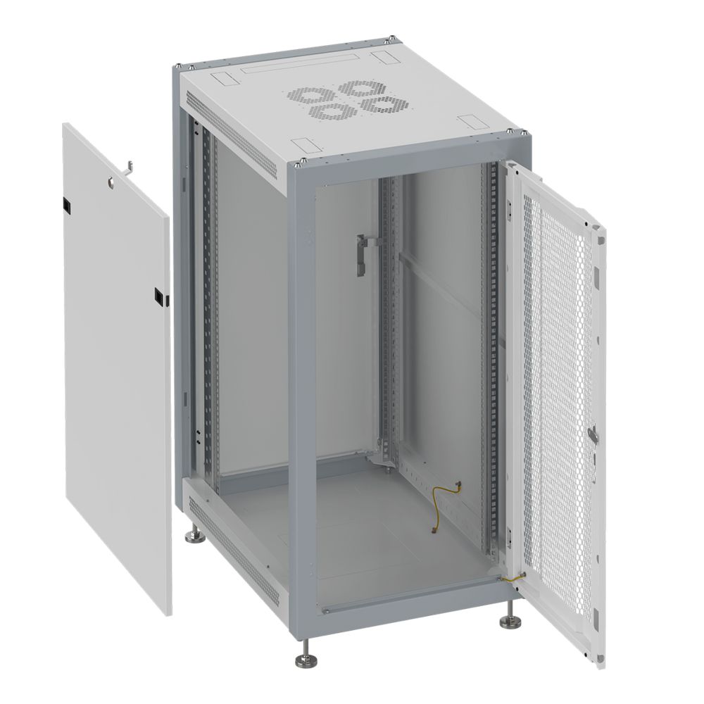 Шкаф монтажный телекоммуникационный 19" напольный 18U 600x600x935mm (ШхГхВ), передняя дверь перфорированная, задняя дверь сплошная металлическая, поворотная ручка с замком, цвет серый RAL 7035. Разобранный.