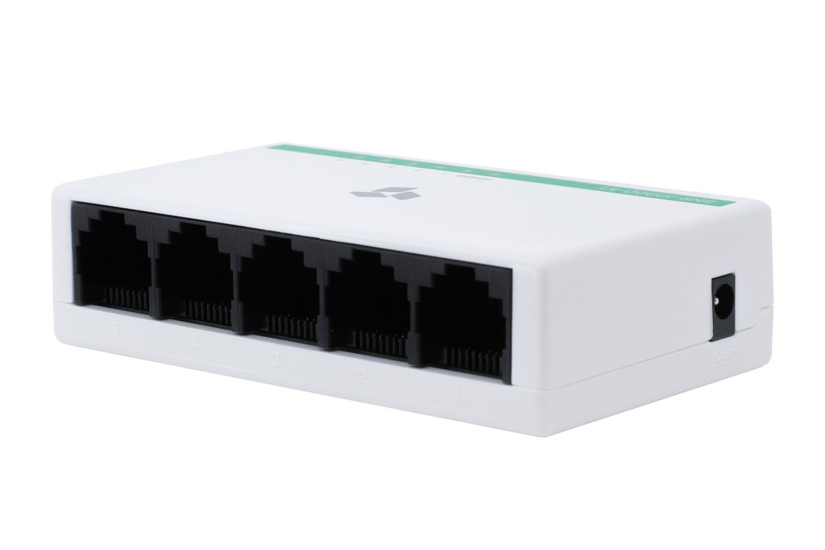 Коммутатор сетевой неуправляемый, 5 портов RJ45 10/100 Мбит/с; внешний БП DC 5В; 0.5А; 0…+40°C; 77x46x21 мм.
