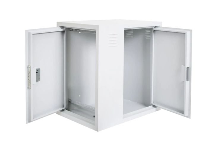 Шкаф телекоммуникационный 19" настенный антивандальный; 5U, передняя дверь цельнометаллическая распашная, боковая дверь открывается изнутри, распределенная нагрузка 25 кг, неразборный, цвет серый, 600х400х580 мм.
