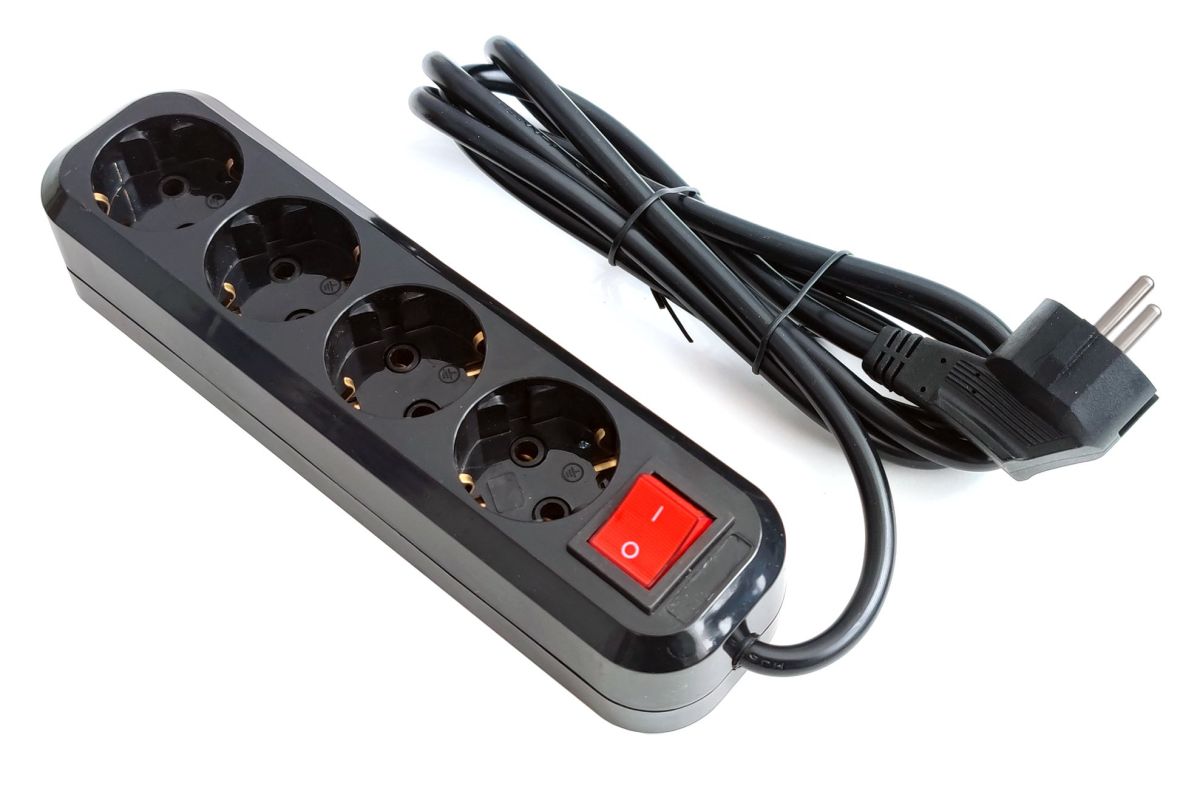 Сетевой фильтр с выключателем со световой индикацией, 4 розетки EURO, 3х0.75 мм2, 2.2 кВт, 10А, 1.8 м.