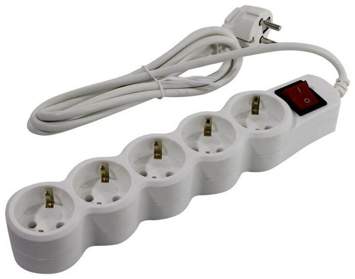 Сетевой фильтр с выключателем со световой индикацией, 5 розеток EURO, 3х0.75 мм2, 2.2 кВт, 10А, 3 м.