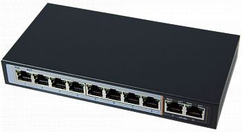 Неуправляемый активный 10-портовый PoE-коммутатор, 8 х 10/100 Мб/с PoE RJ45 (порты 1 - 8); 2 х 10/100/1000 Мб/с с Uplink RJ45 (порты 9 - 10); бюджет PoE до 96 Вт, мощность на порт 30 Вт (макс.)