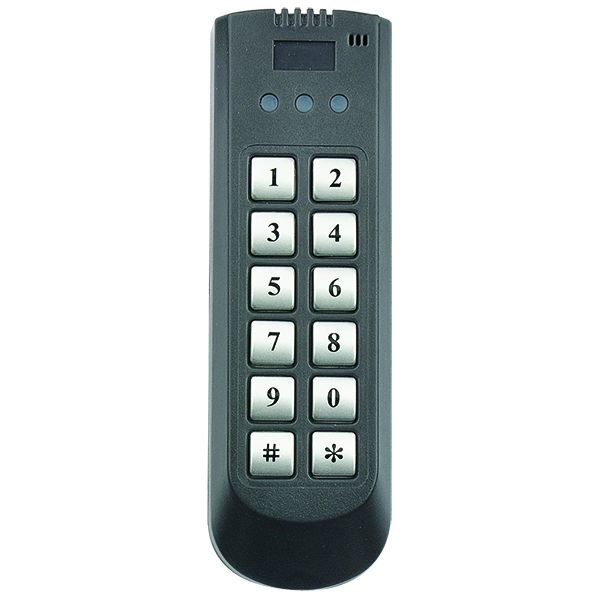 Накладная кодовая панель со встроенным Em-marin считывателем. Автономный контроллер на 1000 карт. До 8 пользовательских кодов доступа. Влагозащищенный корпус. Световая и звуковая индикация. Тревожный выход на сигнализацию. 4 режима открывания: по коду, по карте, по карте и коду, по карте или коду. 12 В, 110 мА, 135х43х25 мм. Цвет - черный