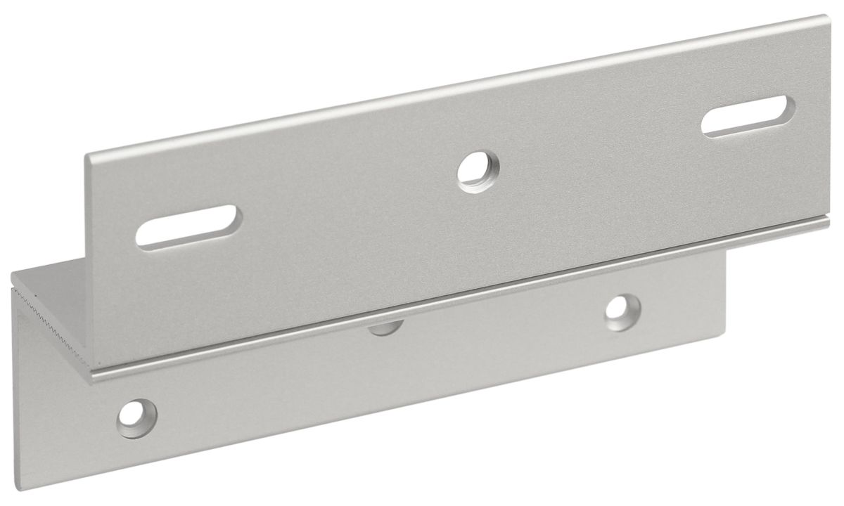 Кронштейн Z типа выполнен из алюминия и предназначен для крепления якоря электромагнитных замков на двери, открывающиеся внутрь.