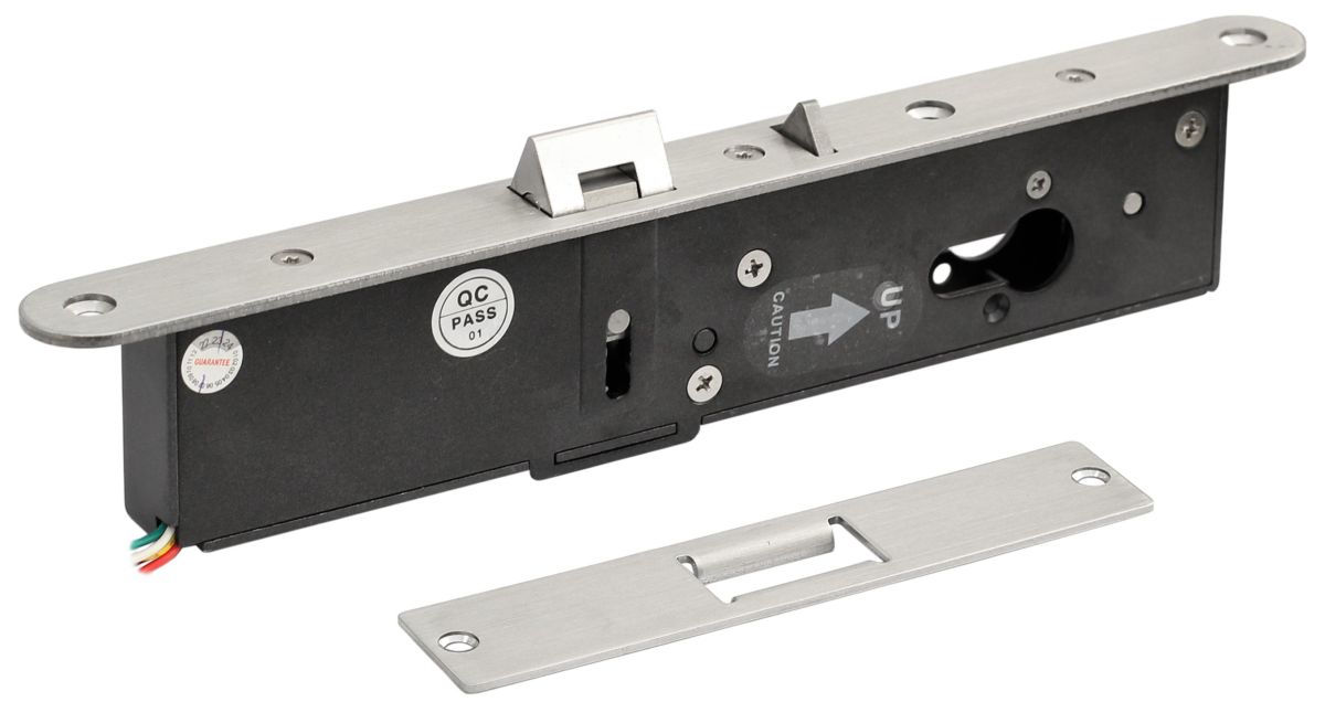 Электромеханический замок, врезной, управление от цилиндра, сила удержания 450 кг, НO/НЗ, мониторинг НР/НЗ/ОБЩ, питание 12-24В DC/AC, 300мА, материал - Нержавеющая сталь, -30...+55°С, 210х25х52 мм, запорная планка: 150х30х1,5 мм.