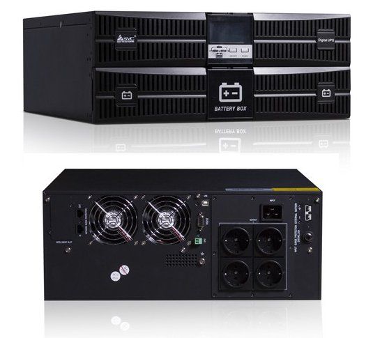 Источник бесперебойного питания On-Line для установки в 19" шкаф, высота 4U, чистая синусоида; P-нагр.2кВА/1.8кВт, U-вх.220В, AVR:110...288В, U-вых.200/208/220/230/240В±1% , АКБ 6х12В/9Ач, Возм.подкл.внешних АКБ/Блоков (до 3-х блоков), U-шина 72В, I-зар.1А; выходные разъемы 4хSchuko CEE7/4, LCD-дисплей, SNMP-карта DY802, USB, RS-232; IP20, t-раб.0...+40°С, 440х173х490 мм