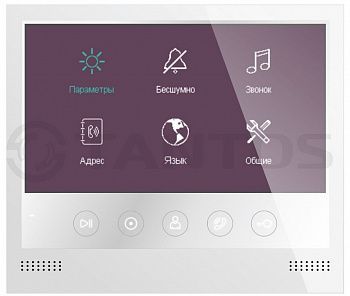 Монитор цветного видеодомофона 7" с сенсорными кнопками, разрешение 800х480, hands free, подключение 2-х вызывных панелей, подключение 2-х видеокамер, до 4-х мониторов в параллель. Питание 220В.