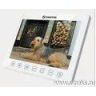 Монитор видеодомофона цветной с 10" дисплеем (управление сенсорными кнопками, Hands-Free, 1024х600). Тонкий корпус 19,7 мм. Русифицированное экранное меню, простое управление функциями. Адресный интерком. Возможности подключения: 4 монитора, 2 вызывные панели, 2 видеокамеры. Подключение внешнего DVR через специальный VGA преобразователь на расстоянии до 50 метров с возможностью управления DVR его же пультом дистанционного управления. Возможности подключения: 4 монитора, 2 вызывные панели, 2 видеокамеры. Питание: вынесенный блок питания нового поколения удобно размещается в распаечной коробке или электро щитке (220В/15В).