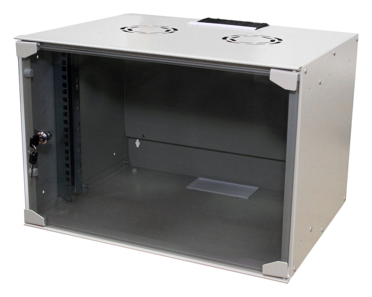 Шкаф телекоммуникационный 19" настенный; дверь тонированное стекло; 6U; 520х400х314; максимальная нагрузка 30 кг; IP20; цвет серый.