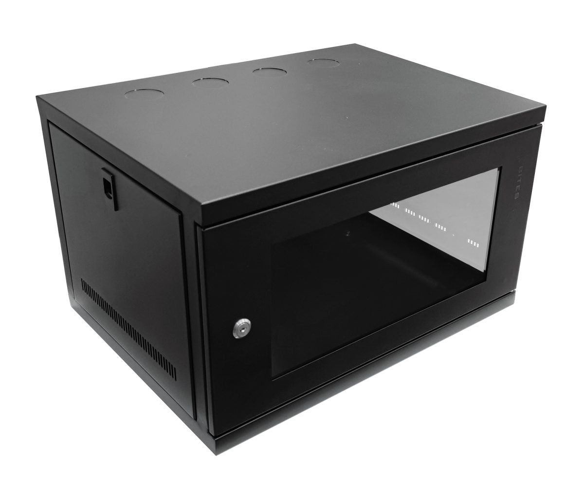 Шкаф телекоммуникационный 19", настенный, 6U, дверь передняя из ударопрочного стекла, распределенная нагрузка 40 кг, цвет черный, сварной, IP20, 320х540x400 мм.