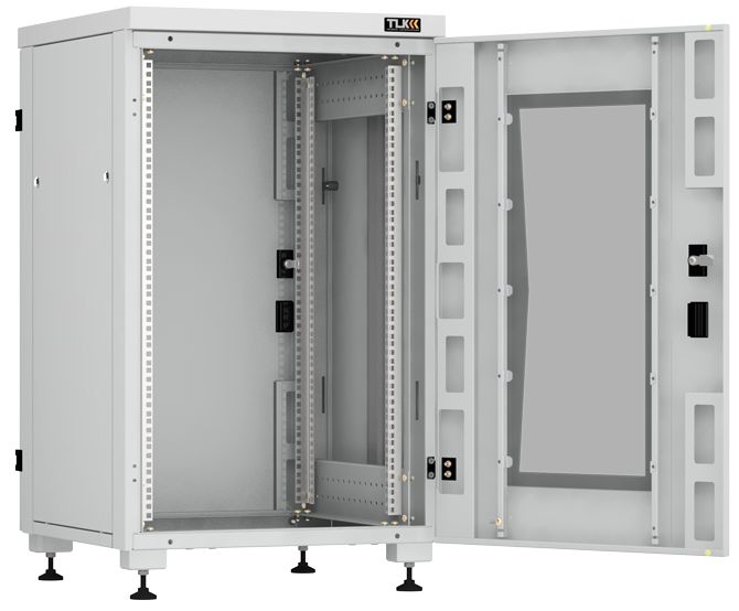 Напольный шкаф 19", 18U, перфорированная дверь, цельнометаллические стенки и задняя дверь, 974х600х800мм, полезная глубина 750мм, в разобранном виде, серый.