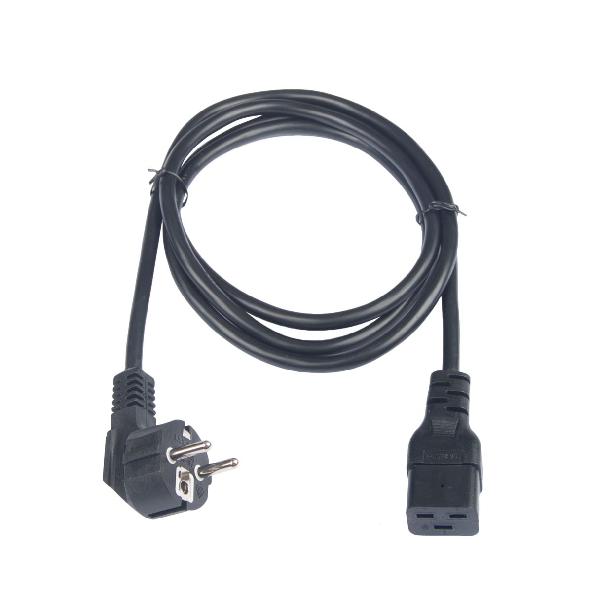 Кабель питания TLK, вход - евровилка с заземлением (Schuko, CEE 7/7) , выход - разъём C19 (IEC 60320), 3x1.5мм2, 1.8 м, 250В 16A, черный