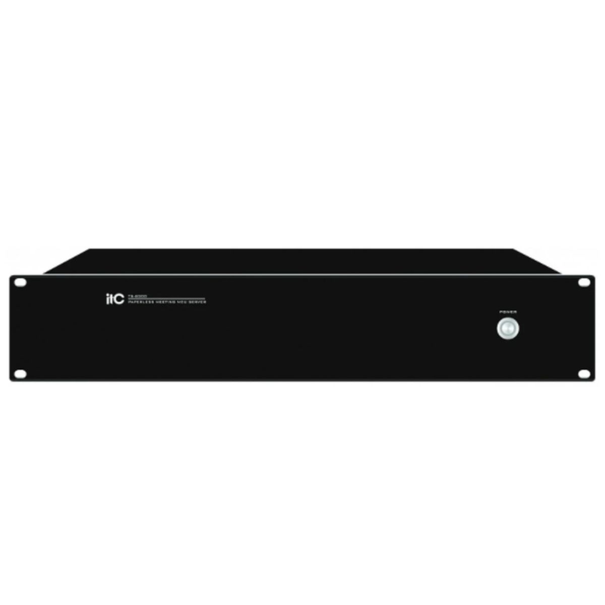 ITC TS-8300 - платформа безбумажной конференц-системы, с предустановленным программным обеспечением для управления конференцией. Поддерживает информацию о ходе конференции, ее участниках и другие дополнительные данные, которые были установлены до начала конференции. Пользователь может управлять сервером через веб-интерфейс. TS-8300 управляет работой других устройств, т.е. указывает TS-8308 какой видеосигнал отправлять на терминалы TS-8304B1 через сеть Ethernet.