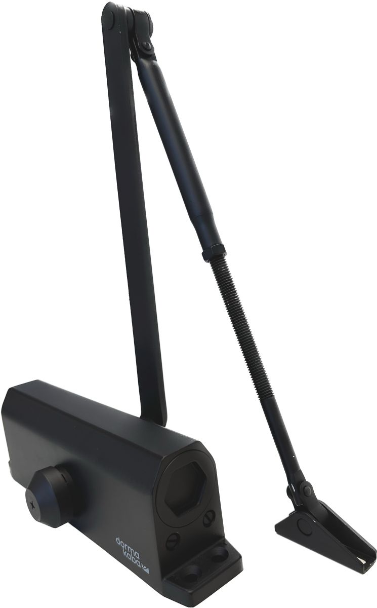 Доводчик для дверей весом 80-100 кг (EN4-5), двухскоростной, установочный размер 208х19 мм, -30..+40 °С, 227х57х72 мм, цвет - коричневый.