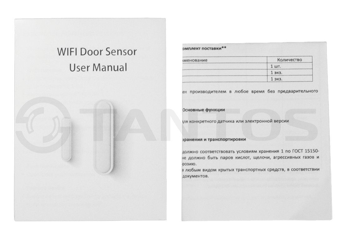 Wi-Fi датчик открытия дверей или окон (основной блок и магнит), возможностью подключения через облачный сервис умного дома Tyua (Smart Life - Smart Living). Питание от батареи CR123A (батарея в комплекте). Поддержка Wi-Fi 802.11b/g/n. Крепление на двухсторонний скотч (в комплекте)