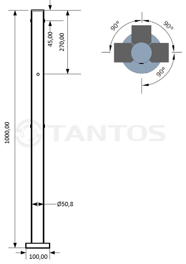 Стойка универсальная 3-х сторонняя, с 6-ю отверстиями для муфт TSb-M (MK) и отверстием для фиксатора поворотной створки.